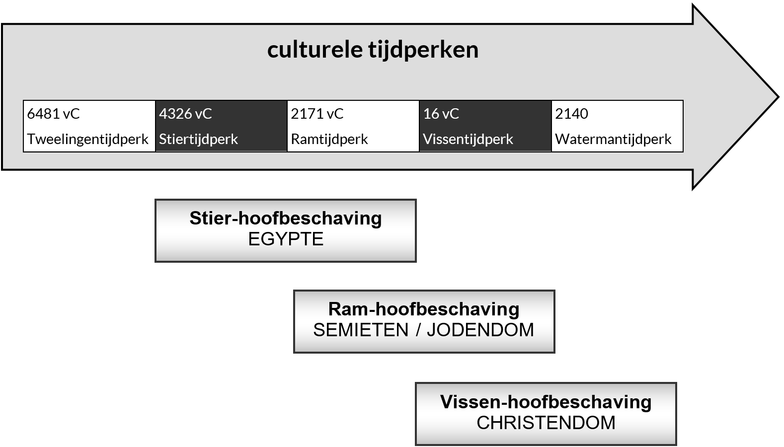 De culturele tijdperken uitten zich in de hoofdbeschavingen: het Vissentijdperk in het christendom, het Ramtijdperk in het Jodendom en het Stiertijdperk in de oud-Egyptische cultuur. Wie eens goed naar deze beschavingen kijkt ziet dat er iets niet klopt: de tijdsduur dat deze beschavingen bestaan lijkt twee keer langer te duren dan de overeenkomstige culturele tijdperken.